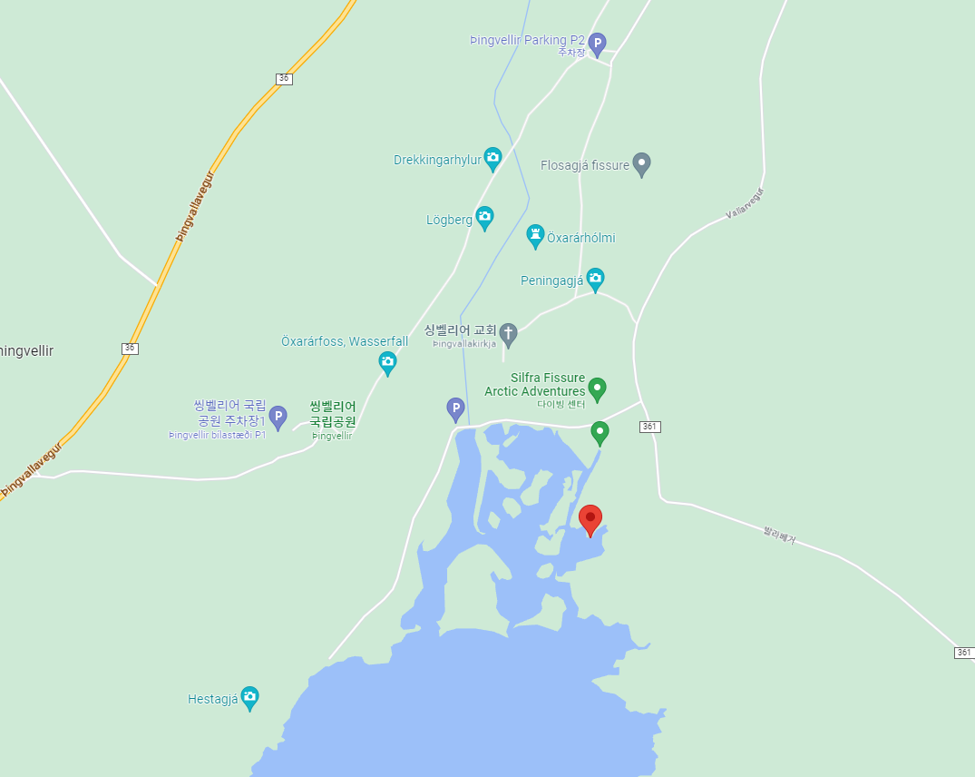 실프라 스노클링 연못으로 향합니다. "Thingvellir P5"에 주차하고 스노클링과 다이빙 밴이 있는 작은 주차장에 도달할 때까지 도로를 따라 400m를 걸어오십시오. Adventure Vikings 가이드를 찾으십시오.