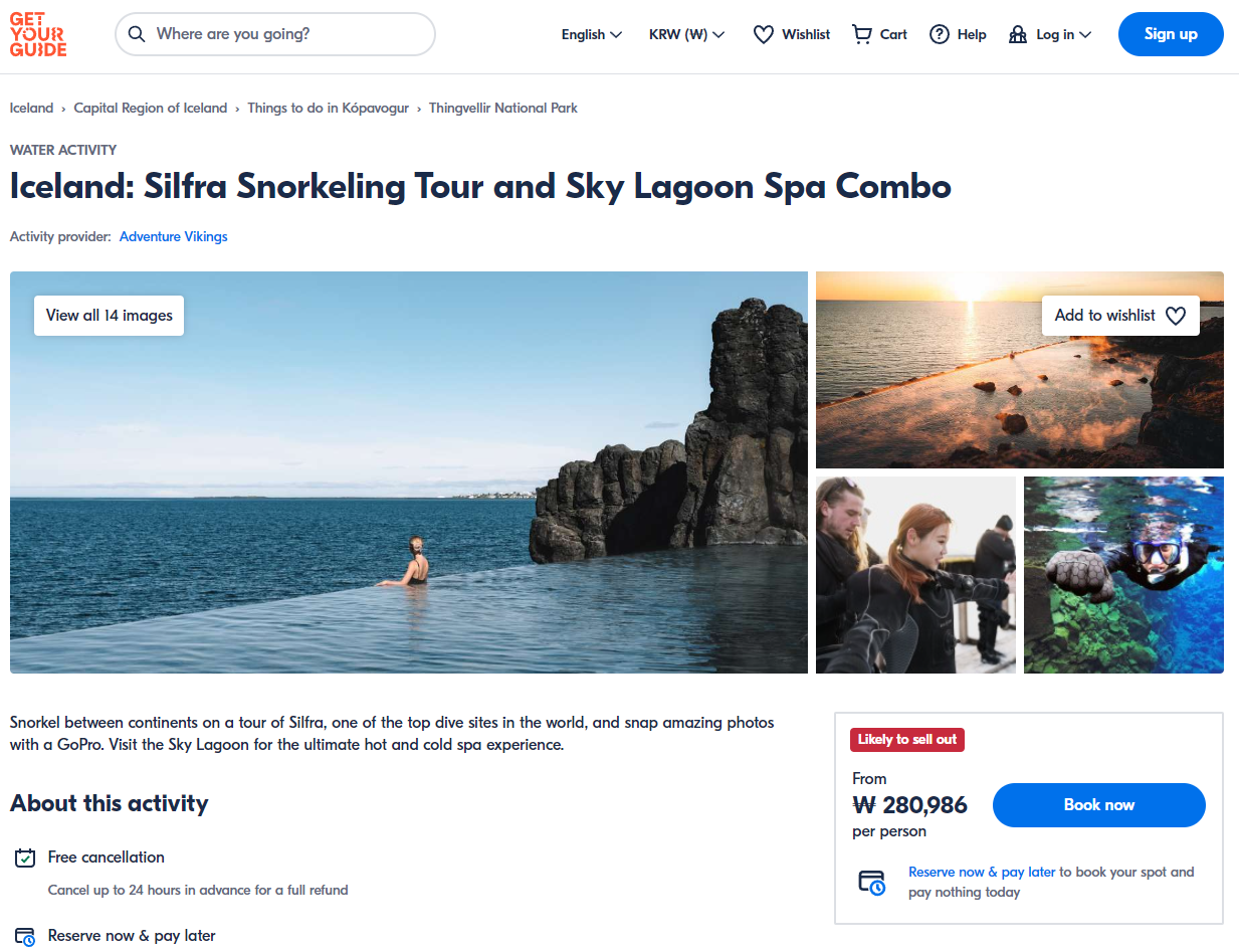 아이슬란드 실프라여행에 세계 최고의 다이빙 장소 중 하나인 실프라(Silfra)에서 실프라의 스노클링과 스카이라군 투어에 참여하시면 대륙 간 스노클링을 하고 GoPro로 멋진 사진을 남기실 수 있습니다. 그리고 최고의 냉온 스파 경험을 위해 Sky Lagoon을 방문합니다.