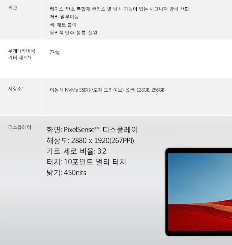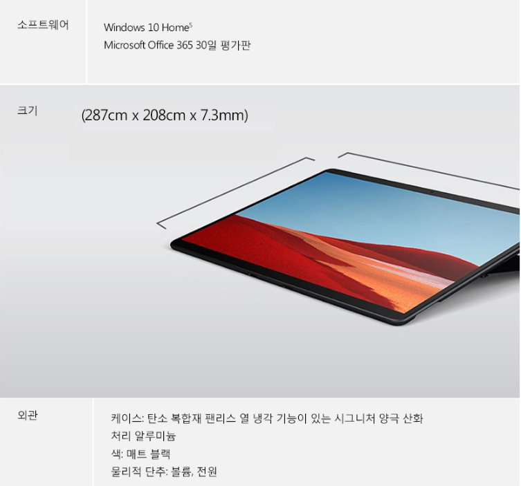 마이크로소프트 서피스 프로X 태블릿PC은 태블릿중에서도