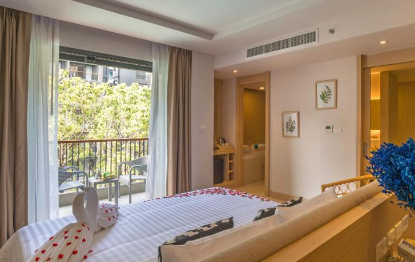 리조트 내부는 현대적인 디자인과 전통적인 태국의 멋이 조화를 이루며, 각 객실은 넓고 아늑한 공간을 제공합니다. 모든 객실은 발코니가 있어 바다 전망을 감상할 수 있으며, 편안한 침대와 최신 시설이 갖춰져 있어 완벽한 휴식을 취할 수 있습니다.
