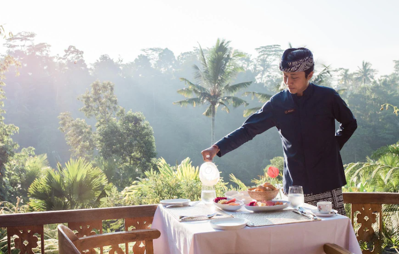 제목이 모든 것을 말해줍니다. 친절한 직원, 아름다운 전망, 긴장을 풀 수 있는 편안한 장소. 우붓까지 무료 셔틀 서비스가 제공되지만 더 먼 곳을 탐험하려면 자신의 교통편이 필요합니다.