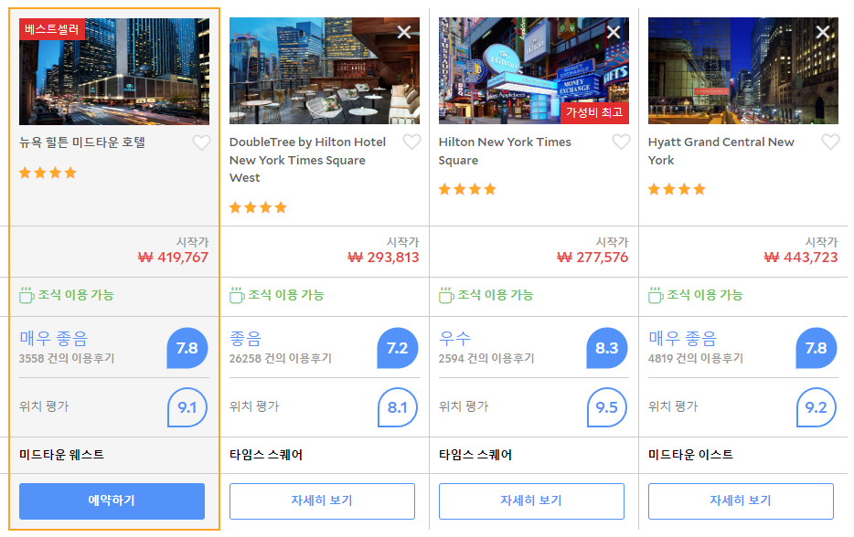 가격이 높지만 뉴욕이 다른 시티보다 비싸다는건 어쩔 수 없는것 같습니다.