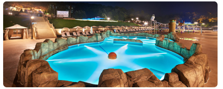 국내최초의 물과 불이 이뤄내는 화염분수를 즐길수 | 있는 수공간과 고급스러운 카바나들이 위치한 숲속의 공간으로 어른과 아이 모두 색다른 경험과