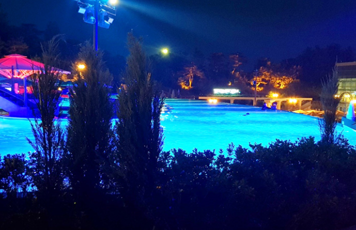 동양 최대 규모의 원형 바데풀은 10여종의 수치료와 마사지 시설이 있는 수심 1.2m의 직경 30m나 되는 세계적인 규모의 바데풀로, 온천과 수영을 동시에 즐길 수 있는 건강 증진의 낙원입니다. 실내 바데풀에는 유수풀, 유아풀, 테마 이벤트탕, 사우나, 닥터피쉬 등이 마련되어 있습니다.