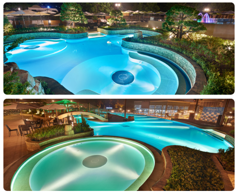 인피니티풀, 감성적인 아쿠아바, 물속에서 멋진 공연을 즐길 수 있는 공간으로 구성되어있으며, 특히 조명과 어우러지는 야간의 분위기는 지금까지 느껴보지 못한 아름다운 감성을 선사할 것입니다.