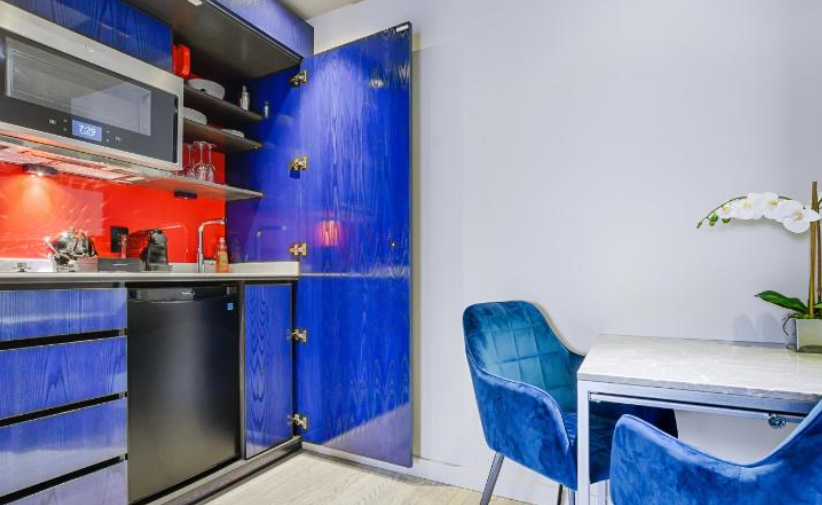 재산은 내가 본 것과는 달랐습니다. 독창적이고 기발한… 객실은 깨끗하고 신선하며 현대적입니다. 간이 주방에 필요한 모든 것과 더 많은 것이 절대적으로 있었습니다. 우리 욕실은 거대한 샤워 시설과 독립형 욕조로 깨끗했습니다. 나는 우리 방이 얼마나 화려하고 깨끗한 지에 날아갔습니다. 로비에 들어서자 William이라는 멋진 직원이 우리를 맞이했습니다. 그는 우리에게 저녁 식사 예약을 예약했고 우리가 원할 수 있는 모든 종류의 외출에 대해 재미있는 추천을 해주었습니다. 그는 너무 친절하고 재미있었습니다! 나는 단순히 그를 좋아합니다. 우리는 도시 전망이 있는 슈페리어 스튜디오 스위트에 머물렀습니다. 이 장소가 사진보다 훨씬 낫다고 말하면 저를 믿으세요! 당신은 놀랄 것입니다. 스위트 룸의 문을 여는 순간 불이 켜졌습니다.
