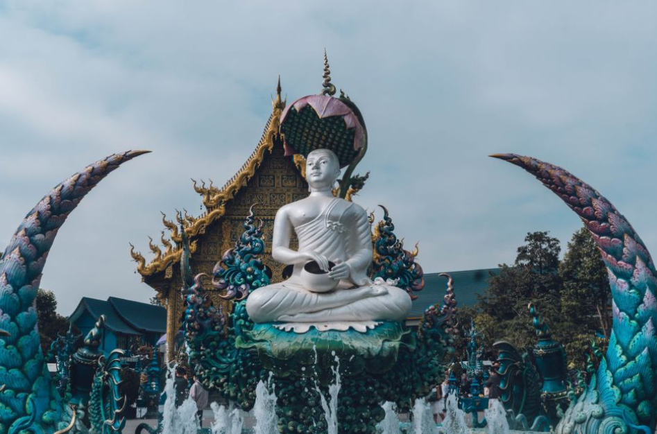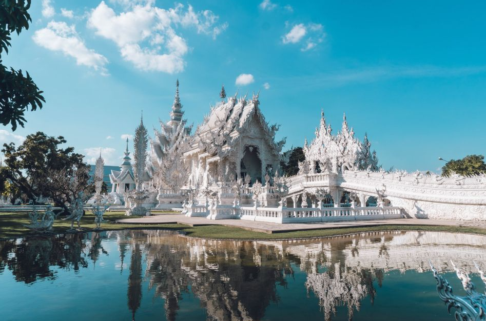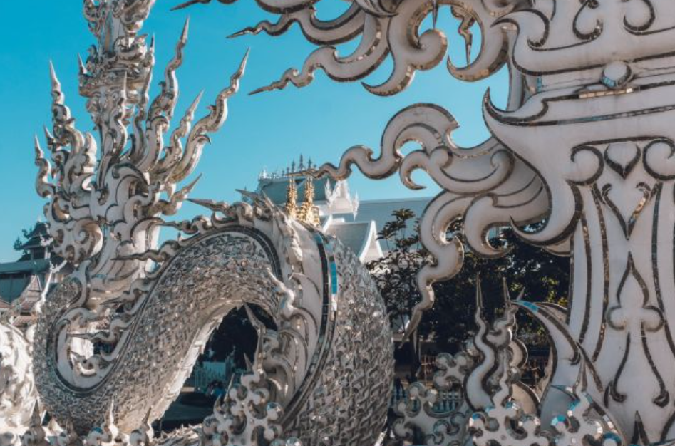 첫 번째 정류장인 백색 사원으로 더 잘 알려진 왓 롱 쿤이 꿈처럼 나타납니다. 반짝이는 거울로 장식된 빛나는 흰색 구조는 고요한 연못에 반사되는 천상의 그림을 그립니다. 사원의 순수함과 부처의 가르침이 인상적인 건축물을 통해 울려 퍼집니다.