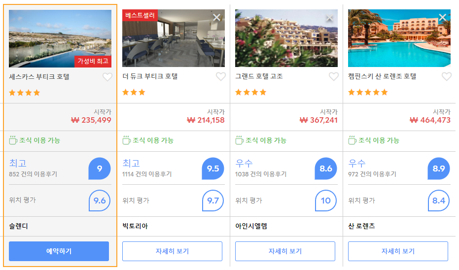 세스카스 부티크 호텔(Cesca's Boutique Hotel)의 최저 가격대는 아고다웹사이트에서 할인특가 가격으로 매일매일 변동되며 10만원대부터 다양하게 형성됩니다. 날짜별로 매일 가격이 다르므로 아고다웹사이트 최저가를 확인하시려면 아래 링크를 누르시고 원하는 날짜의 가격대를 선택해야 정확한 가격을 자세히 보실 수 있습니다.