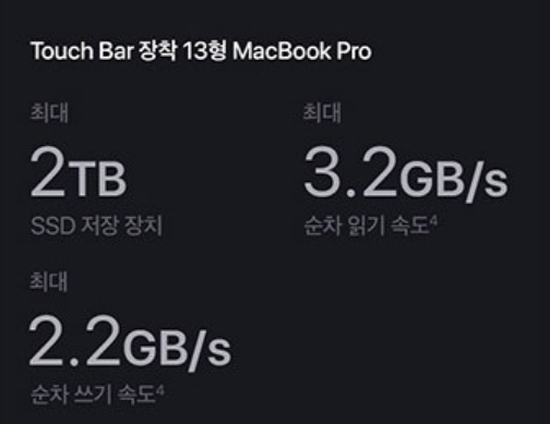 또한, Touch Bar가 장착된 13형 모델은 이전 세대보다 용량이 무려 2배 증가한