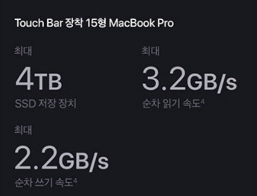 15형 모델은 최대 4TB SSD로, Touch Bar 장착 13형 MacBook Pro는