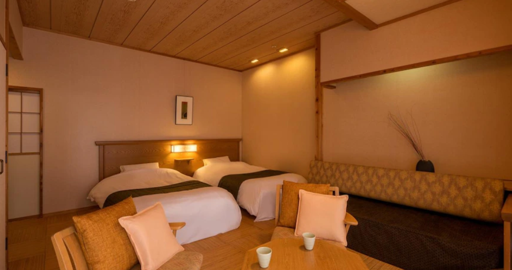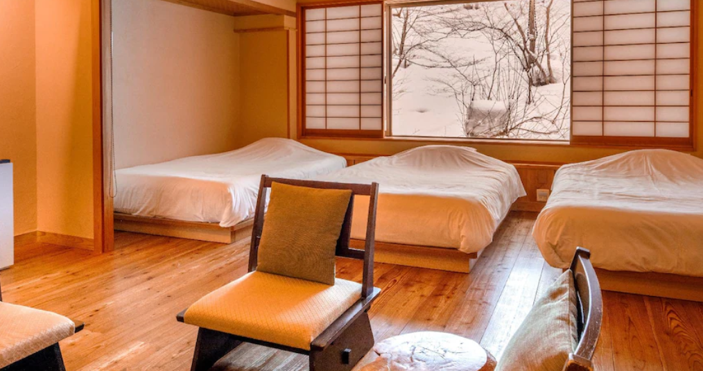 훌륭한 직원 서비스, 방은 크고 옷을 건조할 수 있는 난방 선반과 라운지를 즐길 수 있는 소파가 있습니다. 우리 방은 2개의 해먹이 있어 산을 바라보고 있어 누워서 눈이 내리는 멋진 전망을 즐길 수 있습니다. 사쿠나미 기차역에서 우리를 픽업하려면 호텔 셔틀 버스 예약이 필요합니다. 또한, 호텔 부지 내에는 실외와 실내 모두에 온천탕이 많이 있습니다. 매우 신선한 센다이 A5 와규 쇠고기, 우설, 사시미, 쇠고기 조림 등, 디저트, 주류, 와인, 사케, 핫 초콜릿, 다양한 따뜻한 음료와 차가운 음료가 포함된 호화로운 저녁 식사와 아침 식사 뷔페. 직원들은 영어로 대화도 가능합니다. 모든 것이 훌륭했습니다! 음식 메뉴는 영어로 제공되지 않으며 사소한 단점입니다.