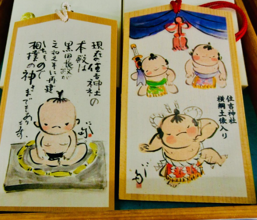 스미요시 신사의 유명한 스모 스모 선수 동상