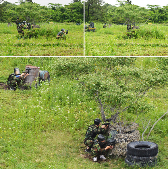 약 2,644m2 규모의 서바이벌 게임장은 30여개 장애물과