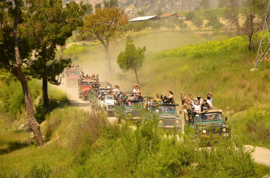 튀르키예 시데를 여행하며 종일 가이드 오프로드 지프 사파리에서 그린 캐년과 그린 레이크 주변 지역의 멋진 풍경을 감상하고 호수에서 보트 크루즈를 즐기고 물에 뛰어들어 수영을 즐겨보세요.