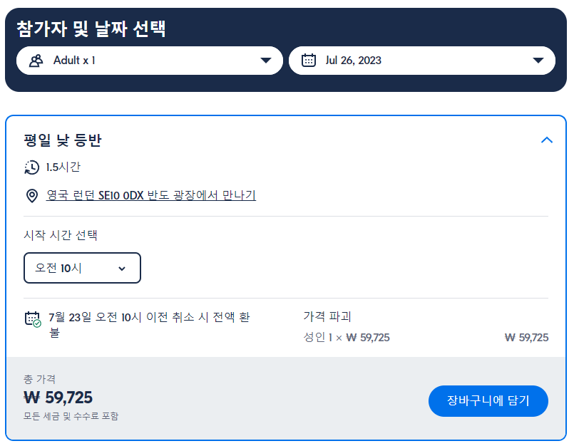 미팅 포인트는 예약한 옵션에 따라 다를 수 있습니다.