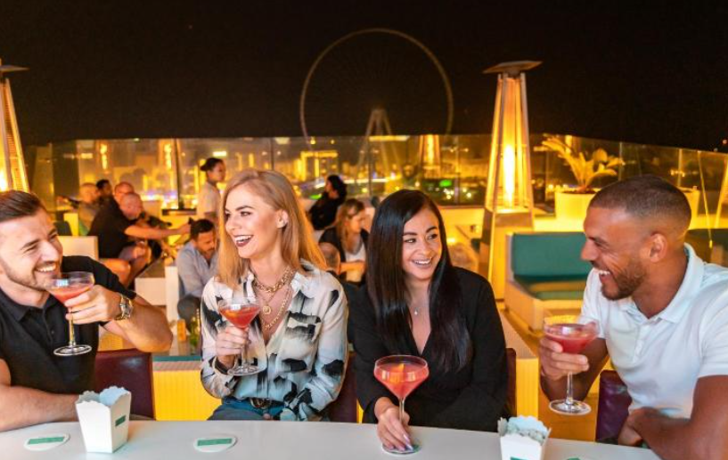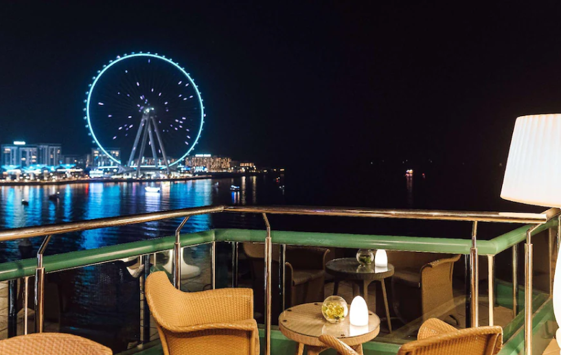 두바이 거리에서 50미터 상공에서 원하는 3코스 식사를 즐기고 하늘에서 독특한 식사 경험을 즐기보세요~ 도시 위의 크레인에 매달린 테이블에서 식사를 하고 두바이 마리나