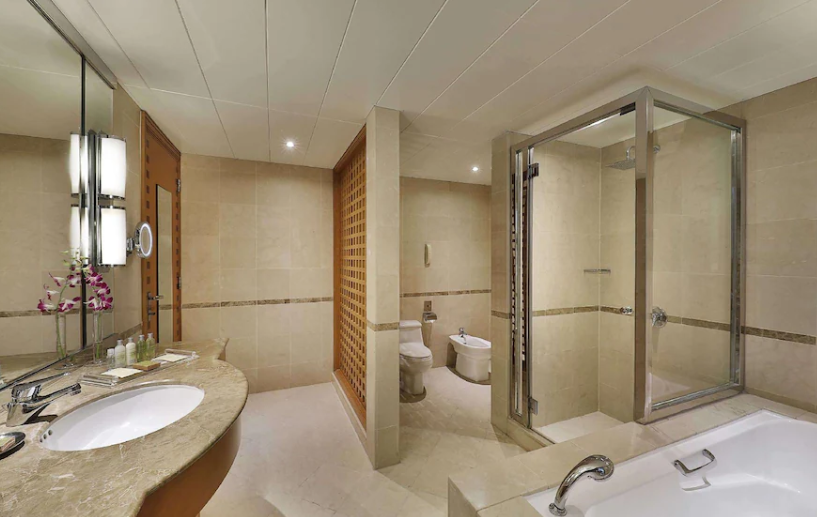 두바이여행에 추천하는 넓고 깨끗한 두바이의 5성급호텔 메리어트 호텔 알 자다프, 두바이 (Marriott Hotel Al Jaddaf, Dubai)는 객실도 좋고, 욕조도 좋고, 화장실 안에 있는 스피커도