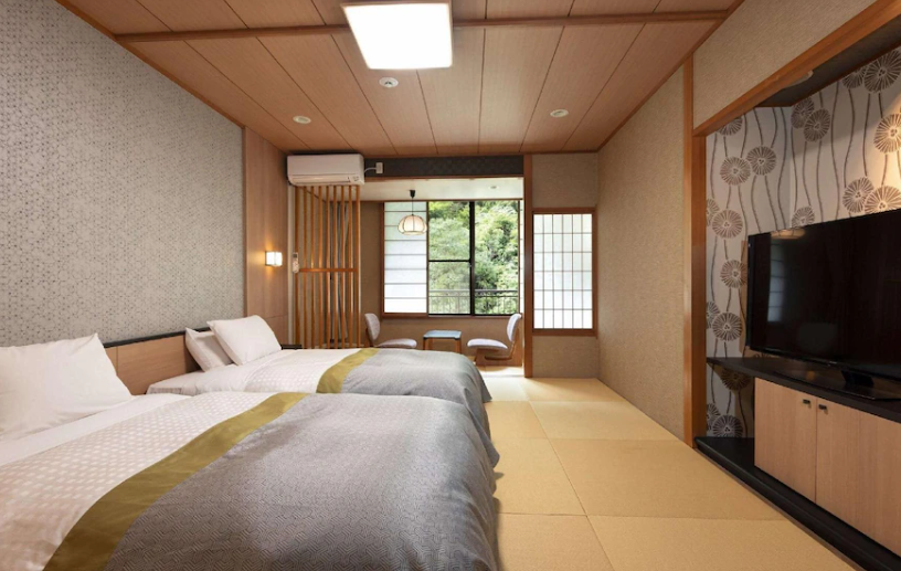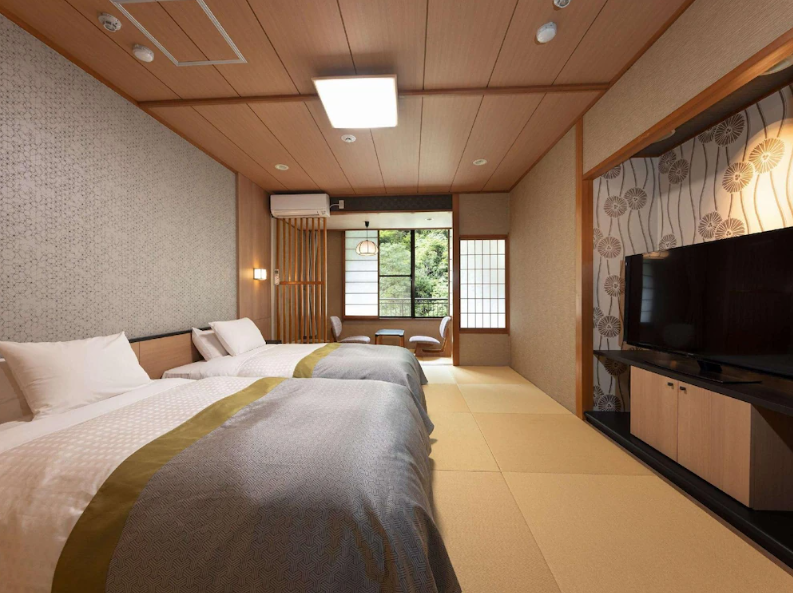숙소 내부는 전통 일본식 디자인으로 꾸며져 있어, 아늑하고 편안한 분위기를 제공합니다. 객실에서는 일본식 다다미가 깔려 있으며, 창밖으로는 아름다운 자연 경관이 펼쳐져 있습니다. 이러한 환경은 방문객들에게 진정한 휴식을 제공하며, 일상의 번잡함에서 벗어나 마음의 평화를 찾을 수 있게 해줍니다. 특히, 객실 내의 온천욕 시설은 개인적인 공간에서 편안하게 온천을 즐길 수 있는 기회를 제공합니다.