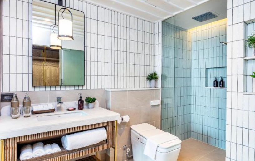 인테리어는 훌륭합니다. 곳곳에 디테일한 디자인이 눈에 띈다. 방은 깨끗하고 편안합니다. 욕실에는 자동 비데와 레인 샤워기가 완비되어 있습니다. 전반적으로 쾌적한 숙박입니다