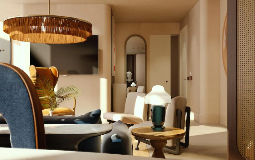 호텔의 외관은 독특하고 혁신적인 디자인으로 눈길을 끌며, 건물의 구조는 마치 나선형으로 올라가는 듯한 모습으로, 방콕의 도시 풍경에서 단연 돋보입니다. 내부에 들어서면, 넓고 환한 로비가 방문객을 맞이하며, 세련된 가구와 예술 작품들이 조화를 이루어 고급스러운 분위기를 자아냅니다.