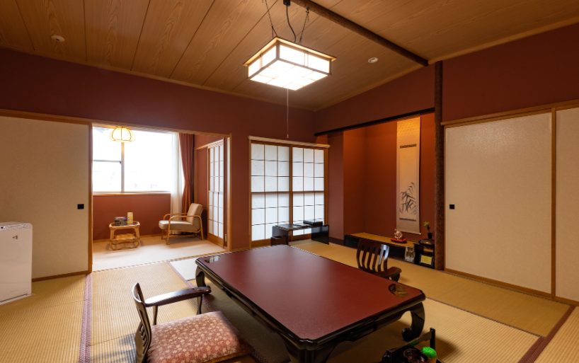 객실은 전통 일본식 다다미로 꾸며져 있으며, 고급스럽고 아늑한 분위기를 자랑합니다. 각 객실에는 전용 온천이 마련되어 있어, 개인적인 공간에서 편안하게 온천욕을 즐길 수 있습니다. 료칸의 온천수는 천연 미네랄이 풍부해 피부에 좋고, 피로를 풀어주는 효과가 뛰어난 것으로 유명합니다. 손님들은 창가에 앉아 아름다운 자연을 바라보며 여유로운 시간을 보낼 수 있습니다.