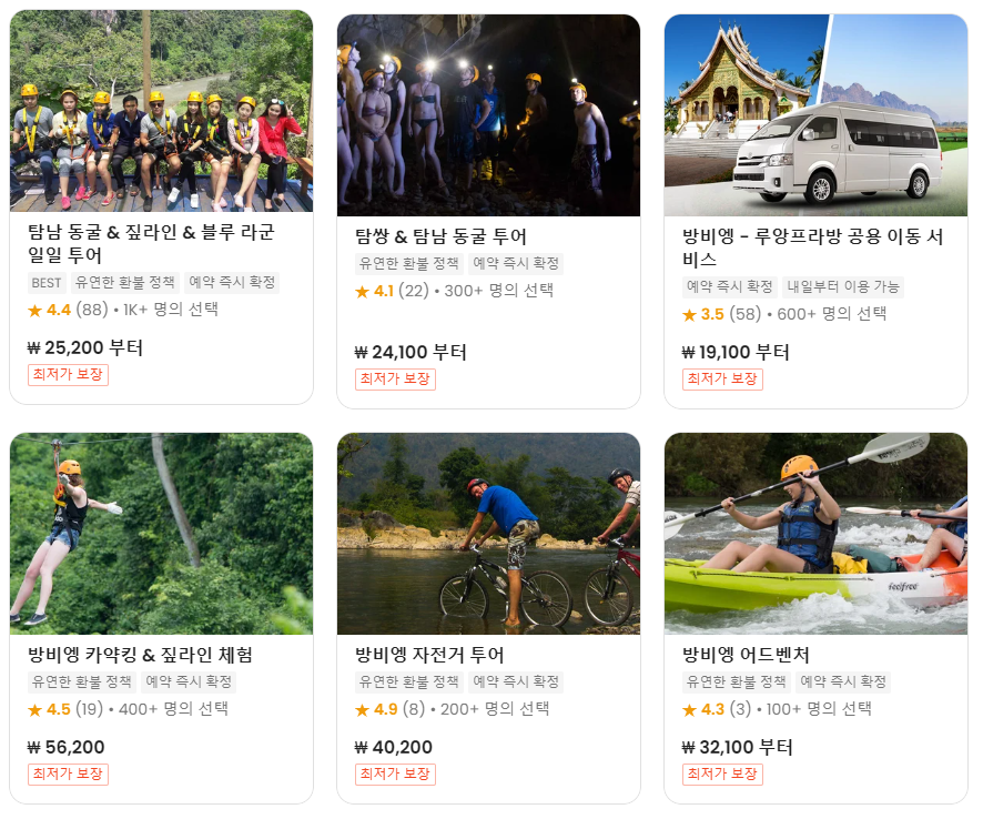 일정 종료 이후 호텔 드롭 서비스도 제공되니 완벽한 하루라고 할 수 있겠죠? 남녀노소 누구나 즐길 수 있으니 지금 라오스의 자연 속으로 모험을 떠나볼까요?