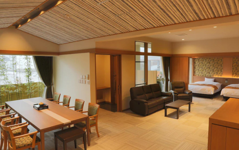 오사카, 고베 사이 온천과 료칸을 즐기기 좋은 조용하고 호화로운 온천지 아리마온천마을 오쿠노 호소미치 (Okuno Hosomichi) 료칸은 인테리어도 예쁘고 객실도 충분히 크고 디테일도 잘 되어있으며 안주와 음료도 준비되어 있습니다.