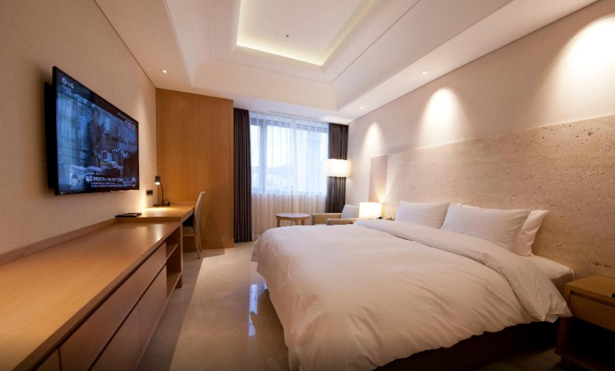 부산 출장(부산 상공회의소)이 있어서 1박 했습니다. 서면 근처이고 가게들이 많은 곳 중간에 있어서 시끄러울까봐 걱정했는데 방음이 잘 되어 있어서 전혀 문제 없이 숙면했습니다. 근방에 서면시장이 도보로 5분 이내라 식사도 맛있는 곳에서 했고, 시차 때문에 아침 일찍 깼는데 24시간 하는 유명한 돼지국밥집들이 있어서 문제 없이 잘 했습니다. 체크아웃하고 나서 회의 시간까지 시간이 조금 남았는데 직원분이 로비 옆 호텔 식당 테이블에서 있어도 된다고 해서 호텔 무료 커피도 마시면서 와이파이로 인터넷 하면서 편하게 시간 보냈습니다. 전체적으로 매우 만족합니다.