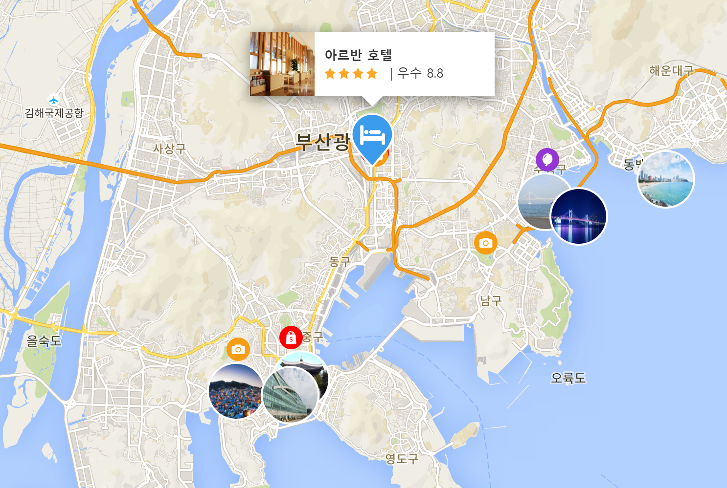 부산의 볼거리와 사운드를 즐기고 싶다면 아르반 호텔 (Arban Hotel)은 탁월한 선택입니다. 도심까지의 거리는 약 0.2Km이며, 공항까지는 30분 정도 소요됩니다. 아르반 호텔 (Arban Hotel)은 도시의 필수 관광 명소에 쉽게 접근할 수 있는 편리한 위치를 자랑합니다.