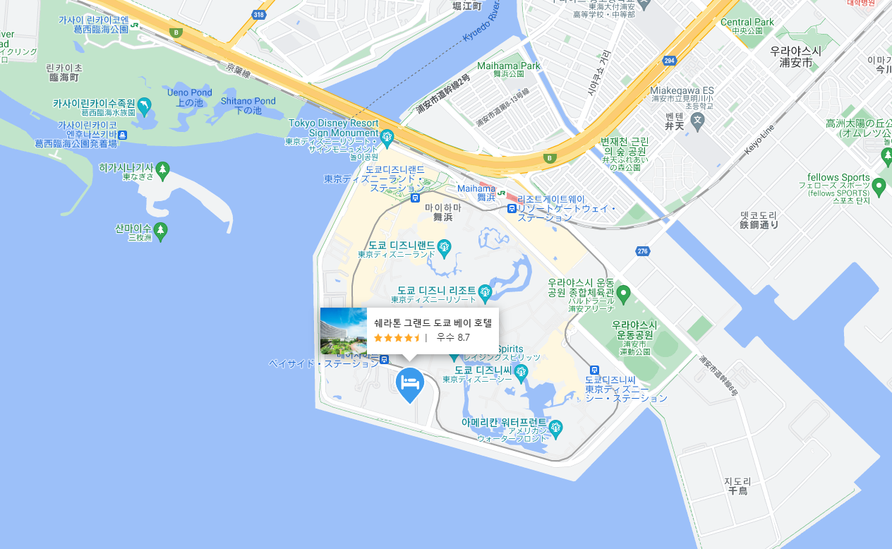 도쿄 디즈니 씨(Tokyo Disney Sea) 및 도쿄 디즈니랜드 (Tokyo Disneyland) 를 즐기며 숙박하기 좋은 쉐라톤 그랜드 도쿄 베이 호텔(Sheraton Grande Tokyo Bay Hotel)은 넓고 깨끗하며 디즈니 기차까지 도보 거리. 호텔 내에 아케이드가 있어 아이들이 즐겁게 지낼 수 있습니다. 디즈니 리조트 라인에서 도보 5분. 쇼핑몰과 레스토랑이 있는 마이하마 역까지 무료 셔틀 버스 서비스를 제공합니다. 밤에 불꽃놀이를 볼 수 있는 뷰는 파크 뷰객실에서 가능합니다.