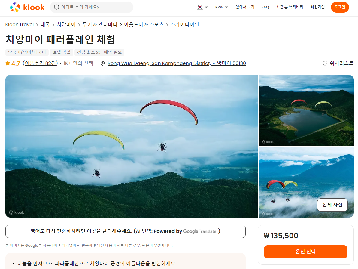 치앙마이 패러플레인 체험은 클룩사이트에서 쉽게 예약하실 수 있으며, 현재 할인된 금액에 이용하실 수 있습니다.