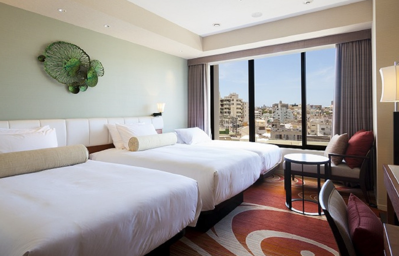 호텔의 외관은 현대적이고 세련된 디자인으로, 내부는 넓고 아늑한 객실로 구성되어 있습니다. 객실은 모던한 인테리어와 함께 고급스러운 가구들로 꾸며져 있으며, 모든 객실에서 나하 시내의 아름다운 전경을 감상할 수 있습니다. 특히, 대형 창문과 발코니가 있는 객실은 자연 채광을 극대화하여 쾌적한 분위기를 제공합니다. 또한, 편안한 침대와 세심하게 준비된 어메니티는 여행 중 편안한 휴식을 보장합니다.