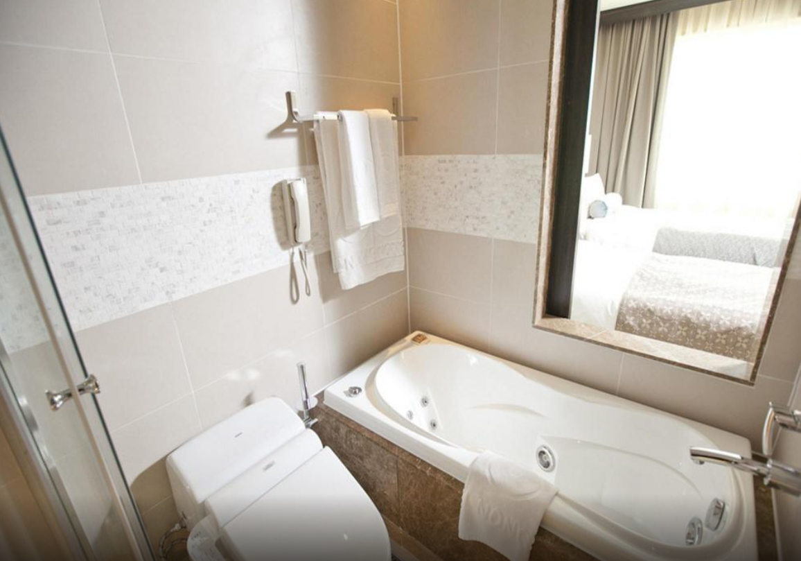 미리 아고다를 통해 결재하고 갔기에 대우가 다르지 않을까 살짝 염려했는데, 체크인 확인전화에서 프론트에서 친절한 안내와 허심청 무료 사우나 쿠폰 및 조식 뷔페 할인권까지...아울러 객실 또한 특급호텔 못지않은 정갈함이 좋았습니다. 단 하나 아쉬웠다면, 놓여진 네 개의 베개가 비슷한 성질이어서 투숙객에 맞는 베개를 선택하도록 다양한 형태로 구비해주시면 좋았을 것 같다는 느낌 단 하나뿐이었습니다!! 아고다 세일 대만족이에요