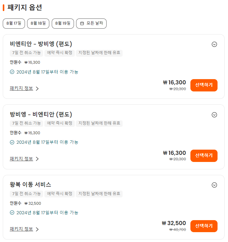 교통편 출발 시간: 매일 6:30, 9:30, 15:30