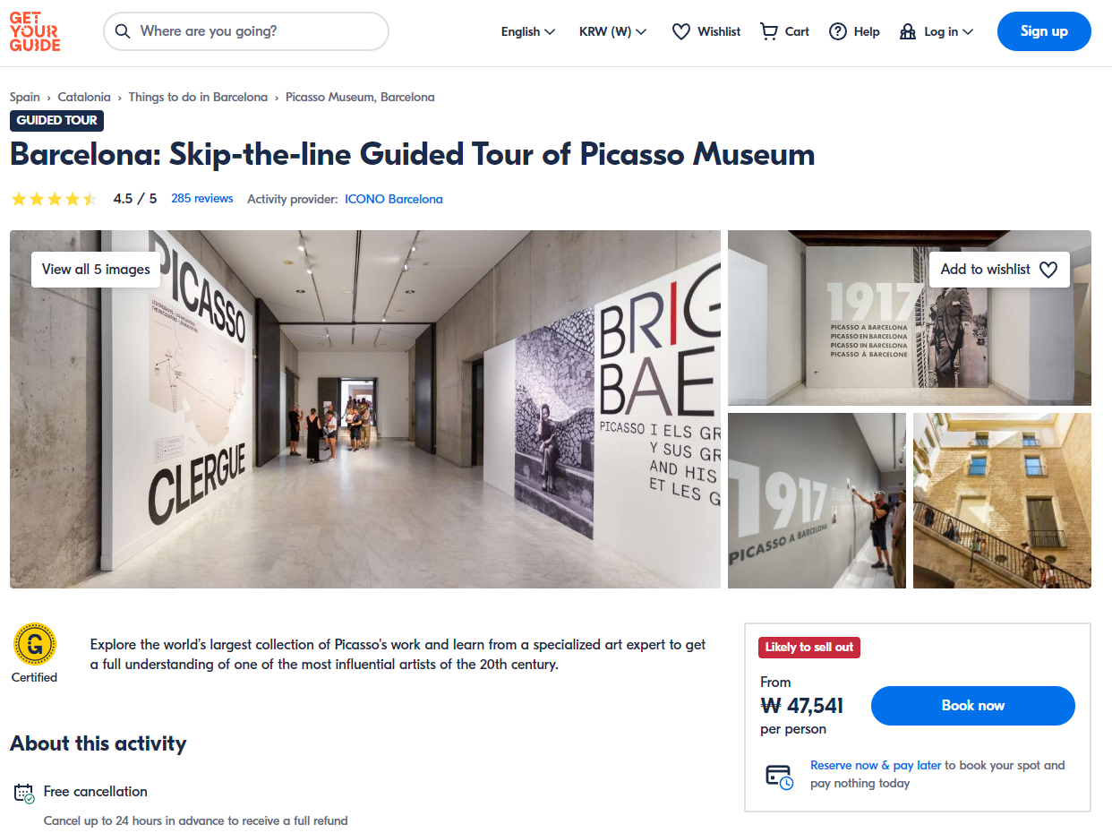 바르셀로나를 여행하며 가봐야하는 미술관 피카소 박물관(Picasso Museum)을 우선 입장 가이드 투어에 참여해 세계 최대 규모의 피카소 작품 컬렉션을 탐색하고 전문 미술 전문가에게 배워 20세기의 가장 영향력 있는 예술가 중 한 명을 완전히 이해해보세요~