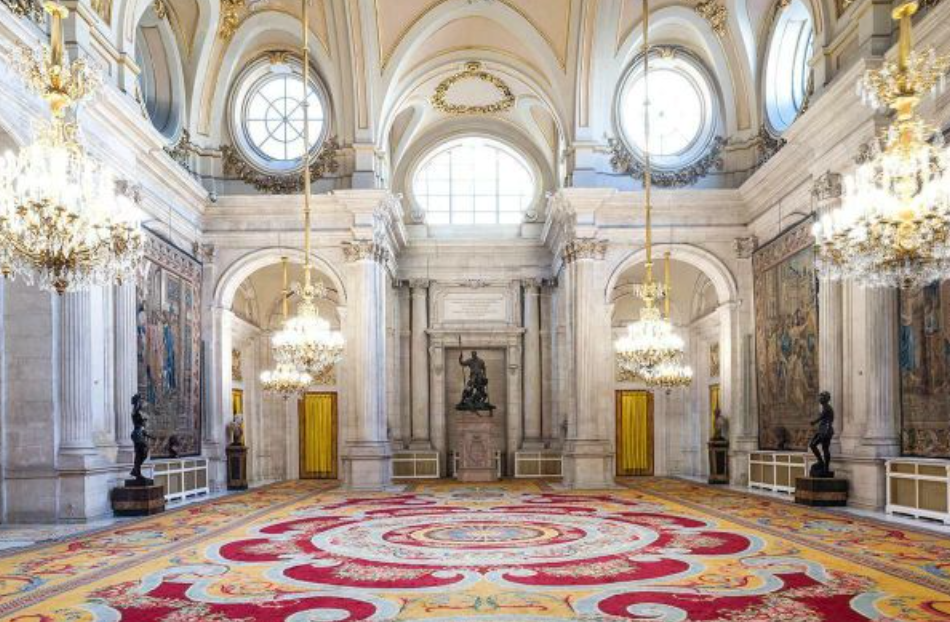 수세기에 걸친 스페인 역사를 목격한 복도를 거닐어 보고, 유명한 예술가들의 프레스코화를 포함하여 살롱 룸의 건축과 장식을 감상하실 수 있습니다. 군주의 개인 숙소에 들어가 왕좌를 방문하고 연회장을 산책도 하실 수 있습니다. Charles IV의 통치에서 거울의 방도 탐험해보세요 `