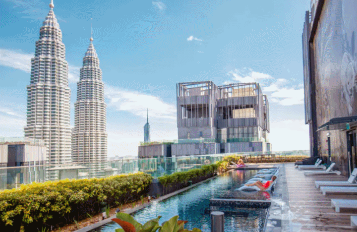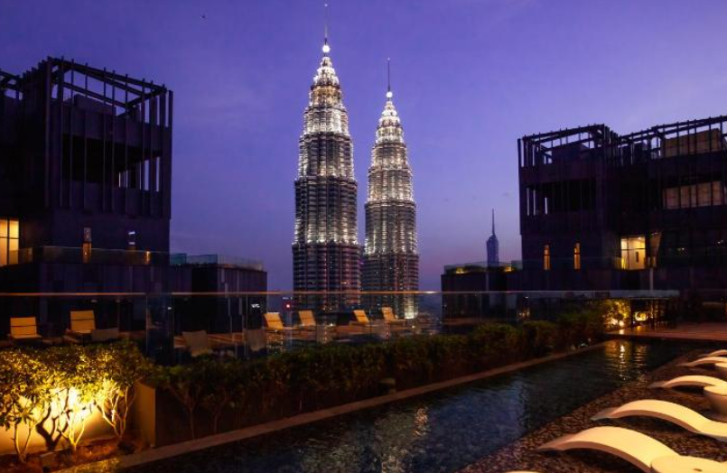 말레이시아 쿠알라룸푸르 / 옥상 수영장에서 klcc 트윈타워의 탁 트인 전망 호텔 스타 스위트