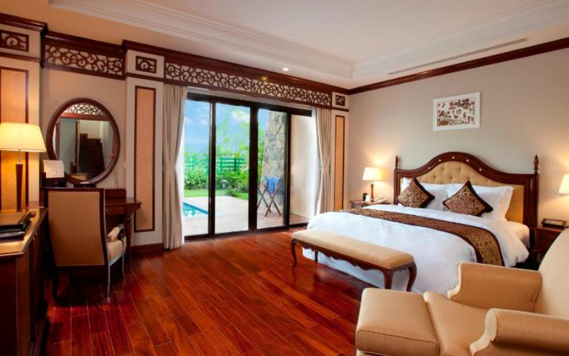리조트의 건축은 현대적인 디자인과 전통 베트남 건축 양식이 조화롭게 어우러져 있어, 각 객실은 고유의 매력을 지니고 있습니다. 넓고 우아한 객실은 고급스러운 가구와 세심한 인테리어로 꾸며져 있으며, 대부분의 객실에서 멋진 바다 전망을 감상할 수 있습니다. 특히, 개인 발코니에서 즐기는 일몰은 이곳에서만 누릴 수 있는 특별한 경험입니다.