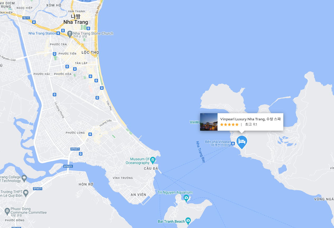 나트랑의 빈펄랜드가 있는 섬의 호텔중 최고의 서비스와 가장 편리한 호텔인 빈펄 럭셔리 나트랑 (Vinpearl Luxury Nha Trang)에 머물며 나트랑의 매력과 주변 명소를 모두 탐험해 보세요. Vinpearl Land Nha Trang과 같은 테마파크에서 신나는 하루를 기대하고 있다면 단 3.4km 거리에 위치한 빈펄 럭셔리 나트랑 (Vinpearl Luxury Nha Trang)의 객실에서부터 시작해야 합니다.