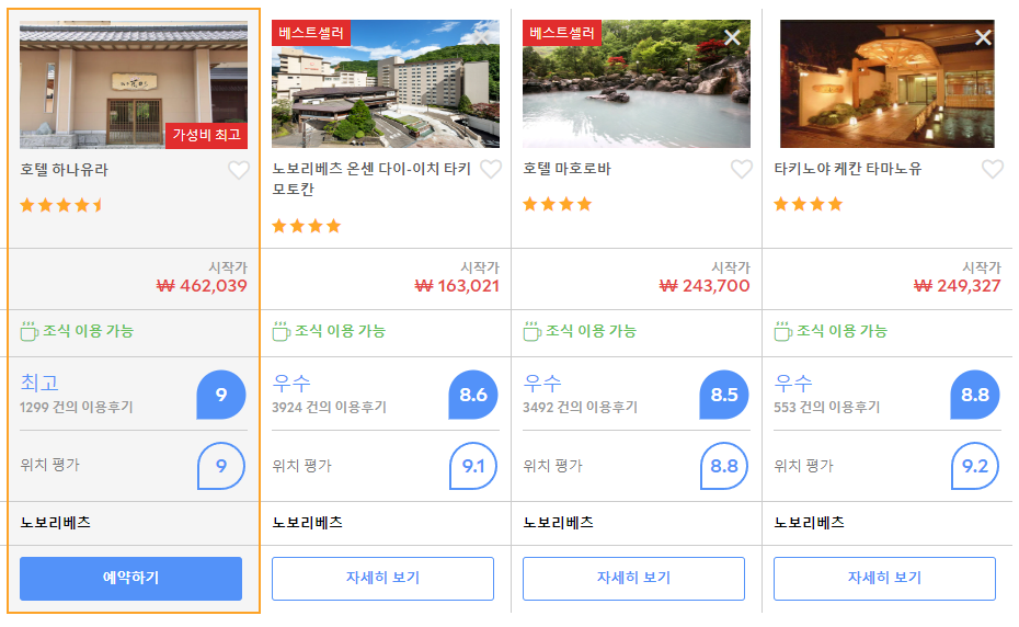 노보리베츠료칸 하나유라 (Hotel Hanayura)의 최저 가격대는 아고다웹사이트에서 할인특가 가격으로 매일매일 변동되며 10만원대부터 다양하게 형성됩니다. 날짜별로 매일 가격이 다르므로 아고다웹사이트 최저가를 확인하시려면 아래 링크를 누르시고 원하는 날짜의 가격대를 선택해야 정확한 가격을 자세히 보실 수 있습니다.