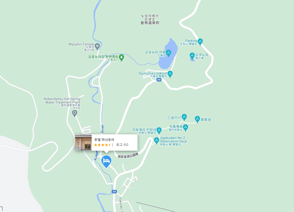 작은 동네에 옹기종기 다 모여있지만 있을건 다 골고루 갖추어진 귀여운 노보리베츠온천마을이며 하나유라는 이 동네에서 힐링을 제대로 만끽하기좋습니다. 눈뜨자마자 야외에서 노천온천으로 시작해 오후에 돌아와 대중탕, 객실에있는 노천탕 즐기실 수 있습니다. 노보리베츠온천으로 가는 교통편은 삿포로, 신치토세공항에서 노보리베츠온천마을로 이동하실 수 있습니다.