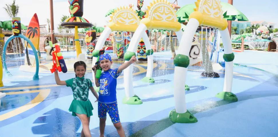 트로피카나 공원 방문 - 신나는 수상 게임 조합: 웨이브 풀, 빅 카누하 수영장과 결합된 티키 폭포