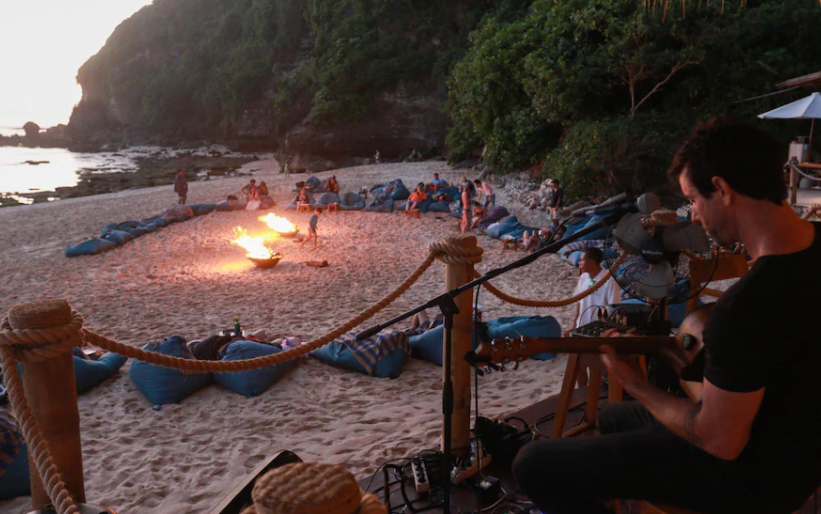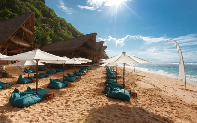 발리를 여행하며 멜라스티(melasti) 해변의 아름다운 일몰이 있는 매우 놀라운 장소 발리 웅가산 화이트 록 비치 클럽에서 음식과 음료를 즐기며 아름다운 발리여행을 그려보세요~