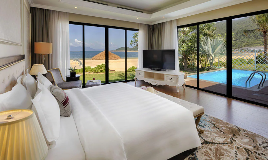 나트랑공항 근처의 인기리조트로 멋진 빌라, 합리적인 가격, 전용 수영장, 멋진 해변, 좋은 아침 식사를 제공하는 멜리아 빈펄 캄란 비치 리조트(Melia Vinpearl Cam Ranh Beach Resort)는