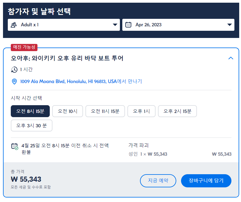 오아후 와이키키 오후 유리 바닥 보트 투어 (Oahu Afternoon Glass Bottom Boat Tour in Waikiki)는 GET YOUR GUIDE 사이트에서 예약하실 수 있습니다. 사이트는 특히 전세계 대부분의 나라, 지역의 투어, 교통편 있어, 쉽게 찾을 수 없는 여행지의 다양한 투어 및 서비스를 이용할 수 있는 글로벌 사이트입니다. 전세계 여행자들이 많이 사용하는 사이트로 한국분들이 많이 예약하는 투어를 찾으신다면 klook 여행사이트 추천합니다. 함께 사용하시면 더욱 편하게 여행하실 수 있습니다.
