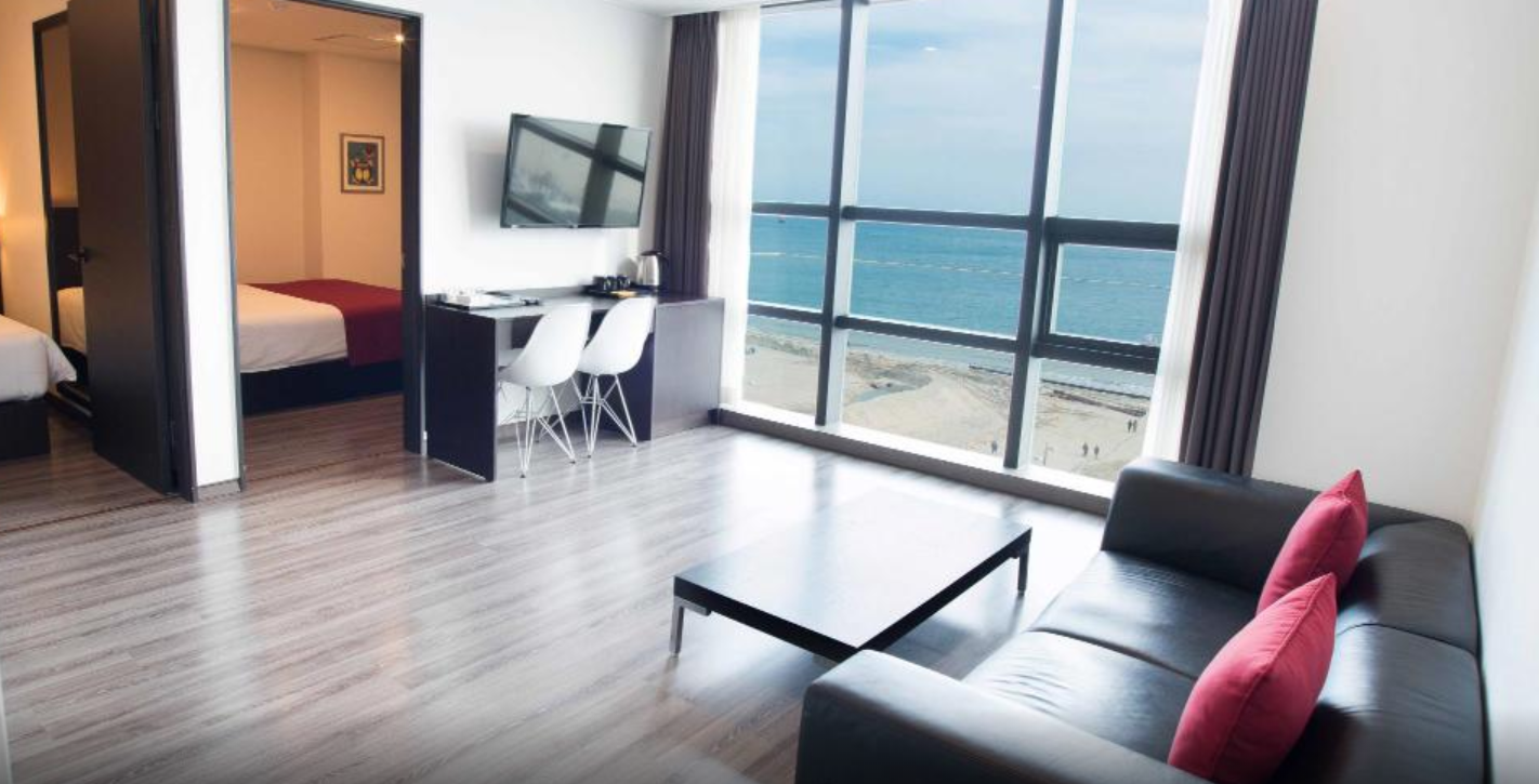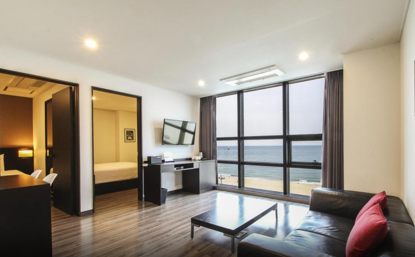 거실이 있는 룸이어서 서로 모여 식사하고 얘기하고 놀기 좋았습니다. 사진과 다르게 조금 작은듯한 느낌은 받았지만 그래도 바로 앞에 해운대 바다가 보여 전망도 좋고 화장실도 넓고 침실도 깔끔했습니다! 직원분들도 호텔 안내나 식기류 대여해주실때도 상냥하게 잘 도와주셔서 감사했어요! 조식도 빵, 잼, 과일, 음료, 요거트 등 소소하게라도 챙겨주셔서 잘 먹었습니다. 다음에 또 이용할것같아요^^