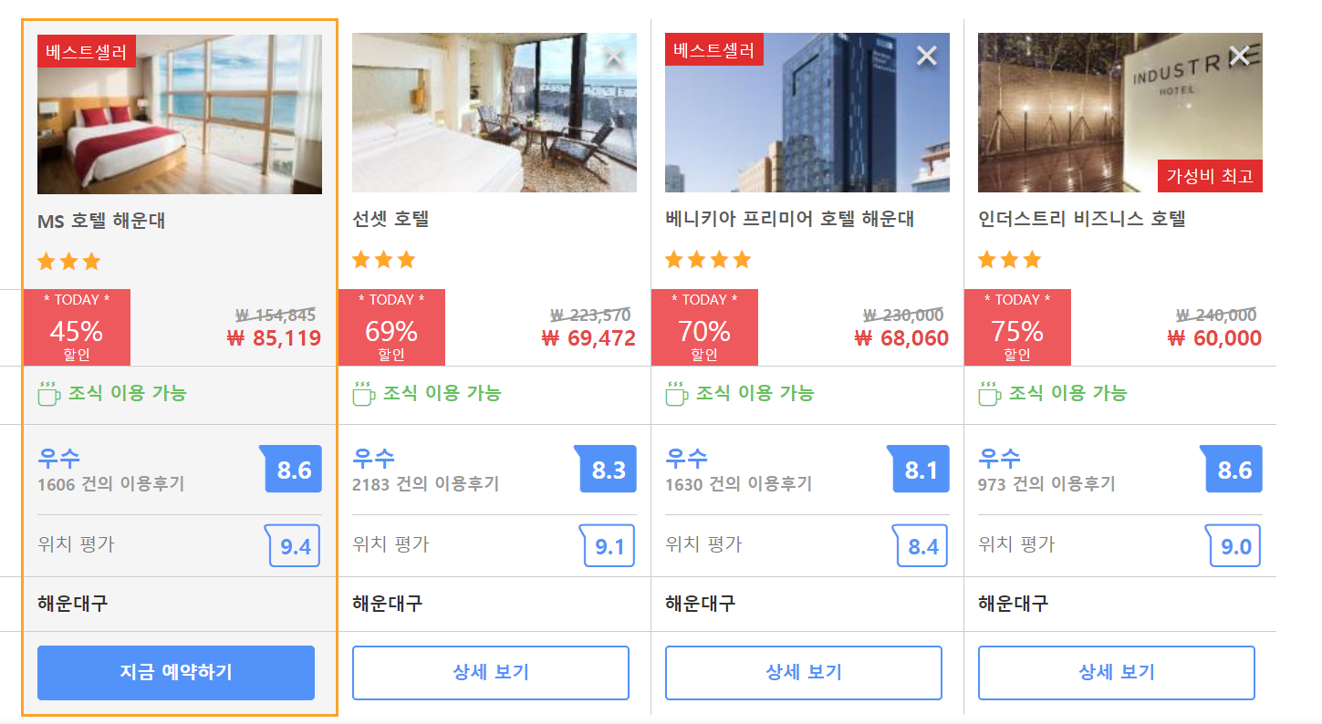 해운대의 가격대비 가성비 좋은 MS 호텔 해운대