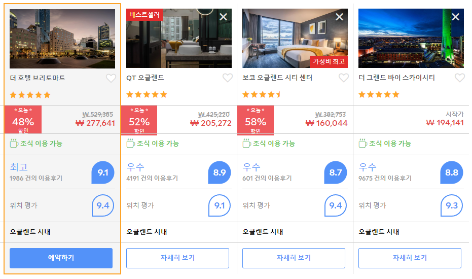 오클랜드시내 호텔추천 / 오클랜드 시내중심에 있는 훌륭한 현대적인 스타일과 편안한 침대 더 호텔 브리토마트