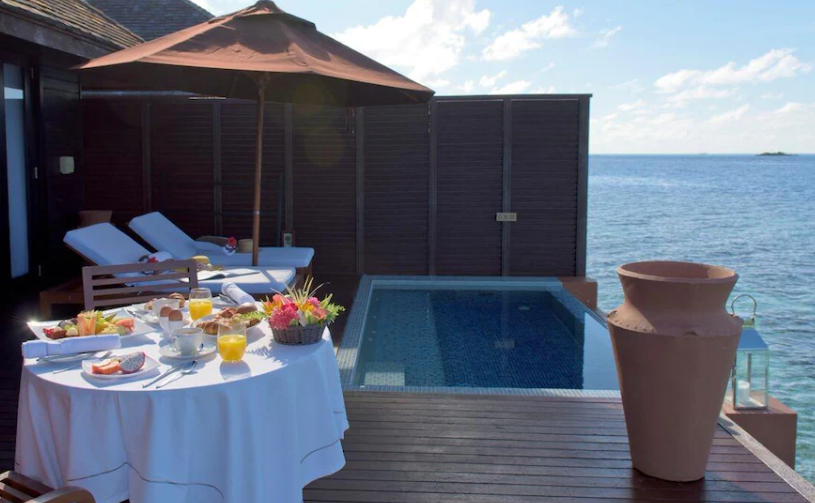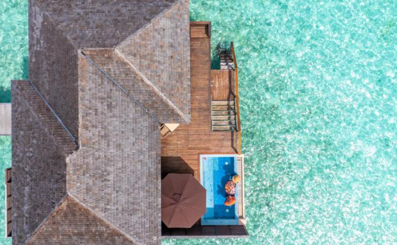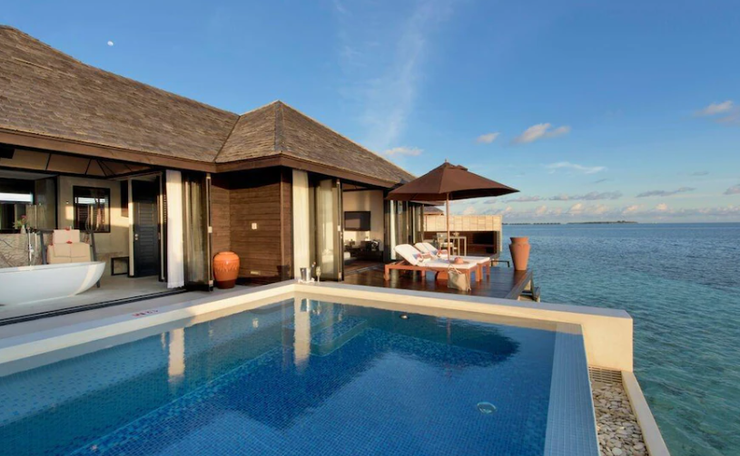 아웃리거 몰디브 마푸시바루 리조트(Outrigger Maldives Maafushivaru Resort)의 수상빌라는 매우 크고 아름다우며 물고기들을 볼 수 있습니다. 위치는 말레공항에서 수상 비행기로 멀지 않