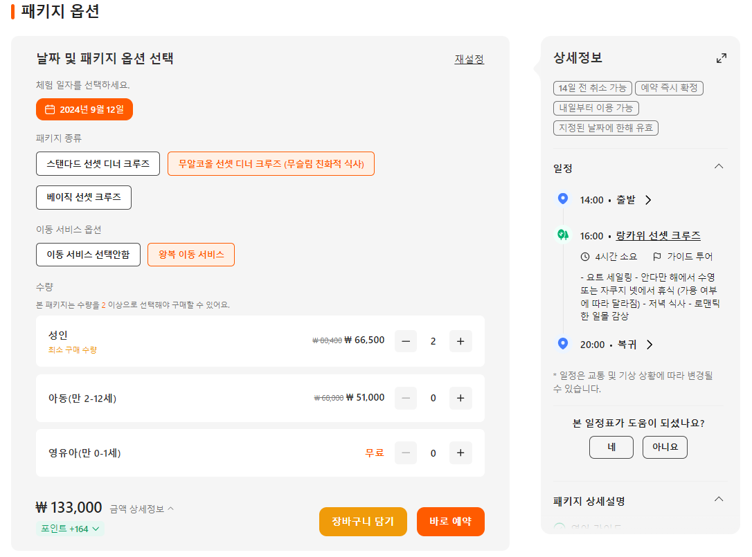 랑카위에서 즐기는 선셋 디너 크루즈는 클룩사이트에서 쉽게 예약하실 수 있으며, 이메일, 전화번호, 카카오톡, 네이버, 구글, 애플, 페이스복 등으로 간편하게 회원가입하고 이용하실 수 있습니다. 가격은 변동될 수 있으므로 예약시 다시 확인하고 이용하세요~